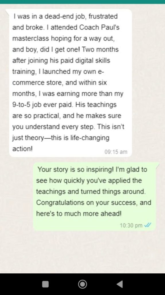 Just A WHATSAPP MASTER CLASS away from unlocking The path to a    6-figure monthly income! Your success story is just a step away—take action now and start your journey toward life-changing earnings today!